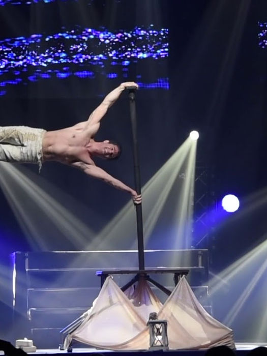 Ce show hybride crée une véritable narration visuelle où force et délicatesse se répondent. Entre tension, grâce et maîtrise du corps, l’artiste propose un moment captivant qui sublime l’espace scénique et marque durablement les spectateurs.